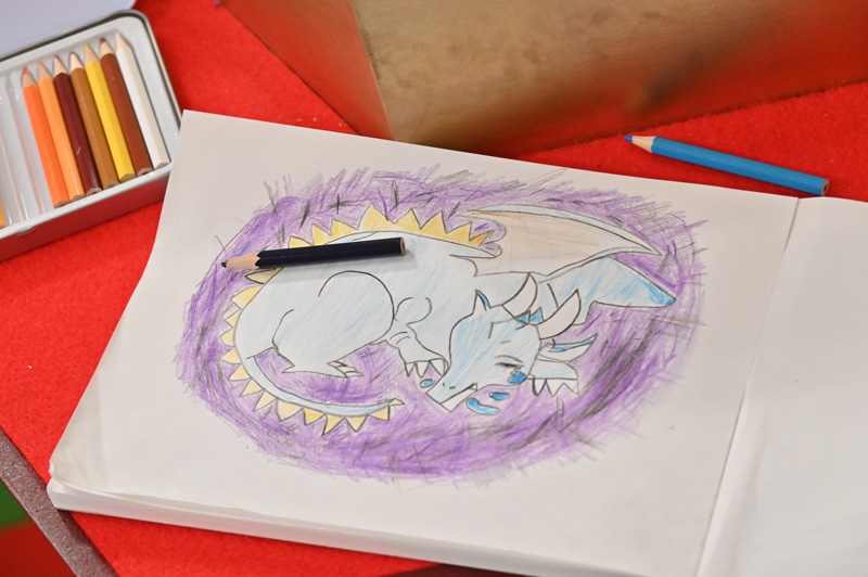そらくんは「悲しみの物語」の古の文字を読めて「とっても悲しいドラゴンさんの絵」を描いていました。