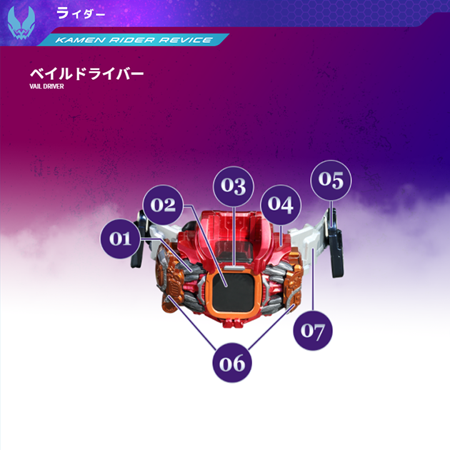 悪魔「ベイル」を中枢として機能させることで実現したシステムだが、その出力に比例して発生する変身者へ高い負荷が、適合条件を厳しいものとしている。 ベイルドライバー|仮面ライダーリバイス|テレビ朝日テレビ朝日「仮面ライダーリバイス」番組公式サイト。《令和ライダー第3作目》は悪魔と契約するヒーロー!?2021年9月5日(日)放送スタートテレビ朝日「仮面ライダーリバイス」番組公式サイト。