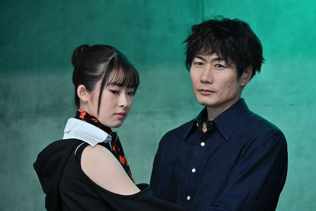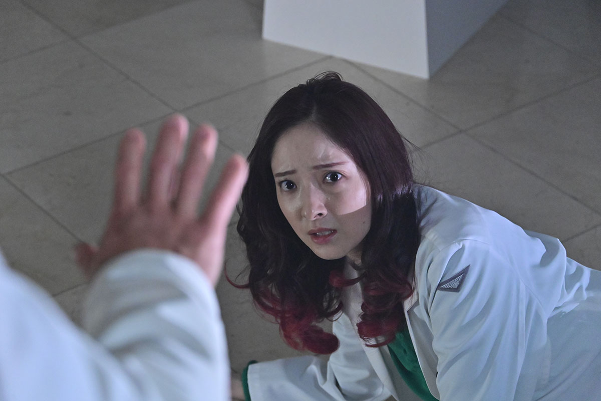 場面カット、御子柴朱美の前に佇む人物は、衣装は赤石長官と思われますが、いつもの黒い手袋はしていません。