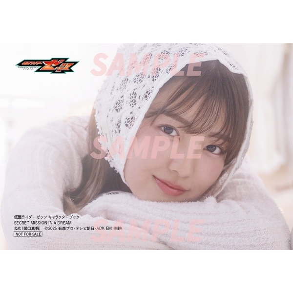 一人でナイトメアに立ち向かう仮面ライダーゼッツ/莫を支える存在として本作に欠かせないのが、国民的人気タレントのねむ(演・堀口真帆)と、莫の妹の万津美浪(演・八木美樹)。今回は、そんな2人のツーショットグラビアが実現。“夢の中で戦う”本作にちなんで、ガーリーなパジャマ姿をお披露目。このキャラクターブックでしか見ることのできない彼女たちの愛くるしいカットは必見だ。